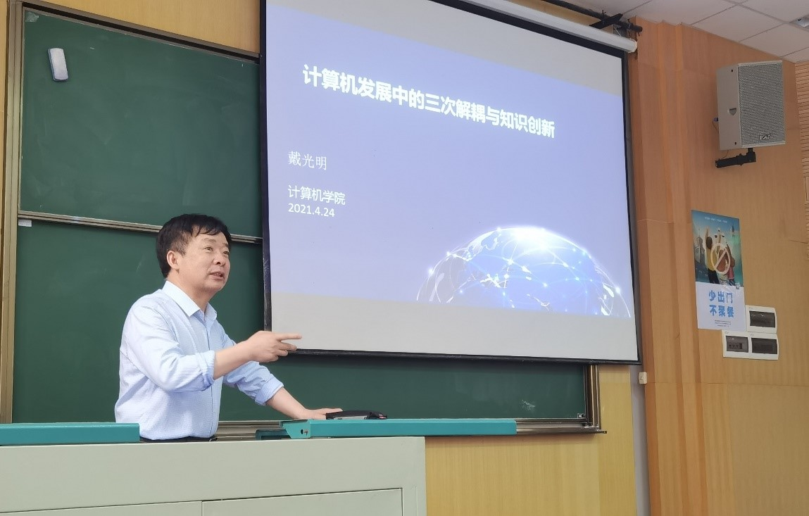 (通讯员:王非凡、李祥瑞)5月27日,成人影院 教授、博导“专业思政宣讲团”在南望山校区教三楼111教室成功举办了一场面向2020级学生的专业知识讲座。本次讲座的主题为“计算机发展中的三次解耦与知识创新”,由湖北省教学名师、成人影院 戴光明教授主讲,2020级辅导员李祥瑞主持。