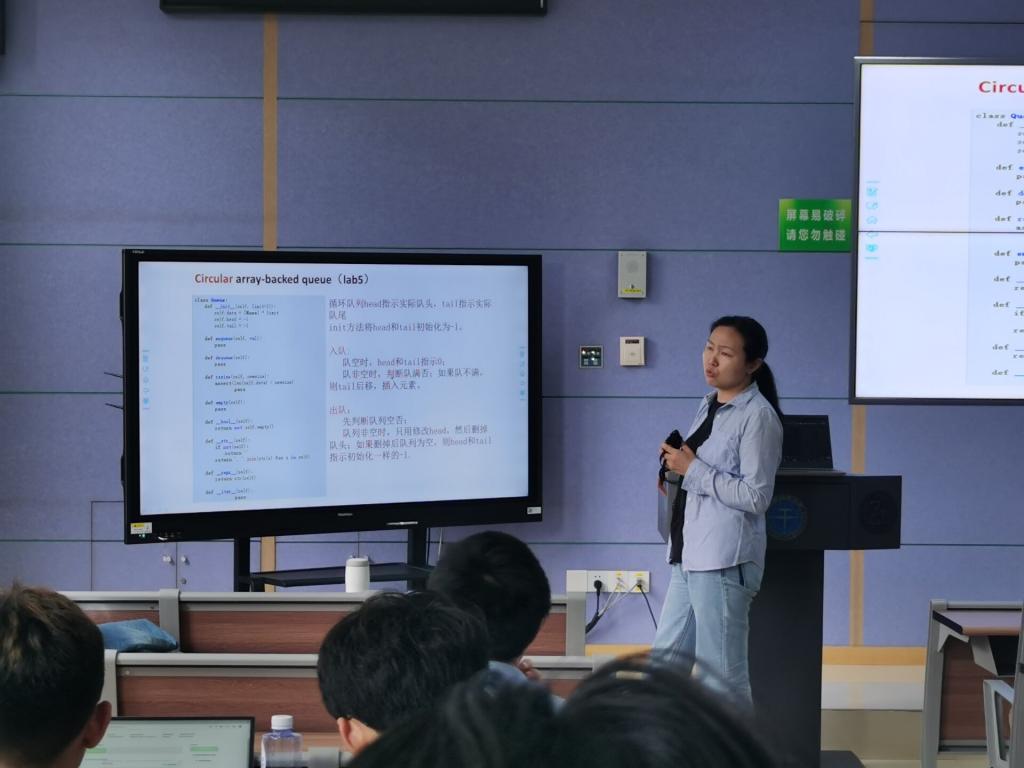 记得初识数据结构课程,同学们难免对这门陌生的课程心生畏惧,您的认真负责稳住了大家焦虑不安的心。无论当天是否有课,您都时刻忙碌着。您忙着为同学们总结课堂重点——上课时您在前排认真听取并记录外教老师讲的专业知识,直播结束后,您及时为同学们梳理课程重点难点,在您的点拨下,原本对晦涩难懂的问题久思不得其解的大家如拨云雾见青天;您忙着为同学们整理学习资料——每次打开数据结构课程群,无论是已经学过需要温习还是即将开课需要预习的学习资料,您早已有序齐全地上传到群文件;您忙着为同学们安排教学进度——您克服中美时差、牺牲自己的休息时间,与外教老师沟通课程安排、作业安排和考试内容。对您的感谢千言万语也难以表述,只想对您说一句:您辛苦了!对于这门课我们一定会迎难而上,积极迎接挑战、努力学习!