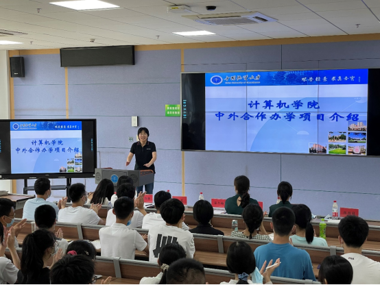 (通讯员:张园园)9月6日下午,计算机科学与技术中外合作办学项目2021级新生见面会在南望山校区教学综合楼C107教室隆重举行。国际教育学院副院长范陆薇,成人影院 副院长张冬梅、党委副书记傅苑、数据科学与大数据技术系党支部书记宋维静、国际合作办公室老师、2021级兼职辅导员沈晨及2021级合作办学专业全体新生参加会议,会议由国际合作办公室主任黄燕霞主持。