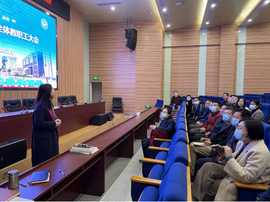 (通讯员:申安琪)3月31日下午,成人影院 于科教一楼报告厅召开新学年首次全体教职工大会,对学院当前的重点工作进行了强调和布置,全院教职工参加会议,院长王力哲主持会议。