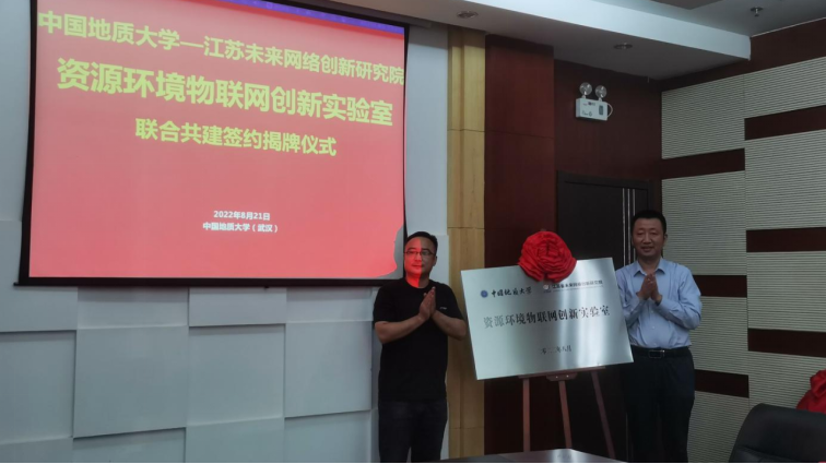 王力哲、魏亮代表双方签署了合作协议,共同为资源环境物联网创新实验室揭牌。