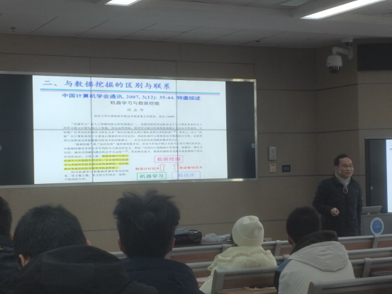 万林老师在讲授“机器学习B”时,针对空间信息与数字技术专业学生的特点,通过数本权威教材,结合当前的热点应用实例,对机器学习的定义、与数据挖掘等相关概念的区别与联系、机器学习课程的重难点等进行了详细介绍。清亮的嗓音和优雅的表现让人备感亲切。