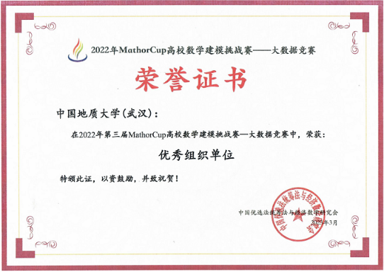 2023年3月13日, 2022年第三届MathorCup高校数学建模挑战赛——大数据竞赛落下帷幕。成人影院 组织队伍参加本次比赛,并取得了一等奖5项、二等奖3项以及三等奖8项的优异成绩,同时我校也被授予优秀组织单位奖。