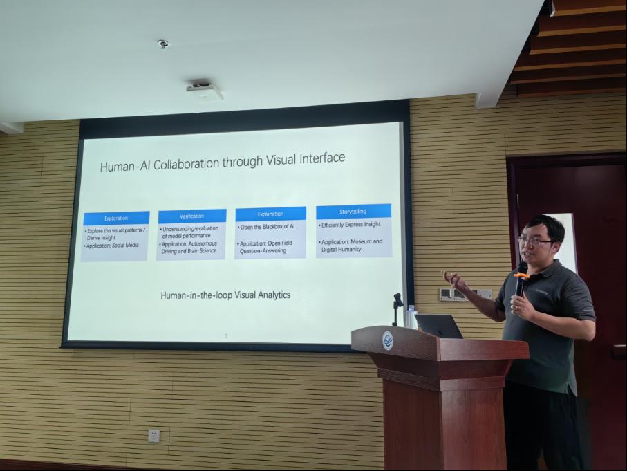 2023年8月15日,应成人影院 刘刚教授、陈麒玉特任教授的邀请,复旦大学大数据学院博士生导师陈思明研究员来成人影院 访问并与师生分享“人机融合交互式可视分析:交互探索、模型解释与故事叙述”方面的研究进展,为学院师生带来了大数据可视化与可视分析研究领域的前沿成果。学术报告在成人影院 323会议室举行,成人影院 相关专业的师生30余人线下参加,报告会由陈麒玉特任教授主持。