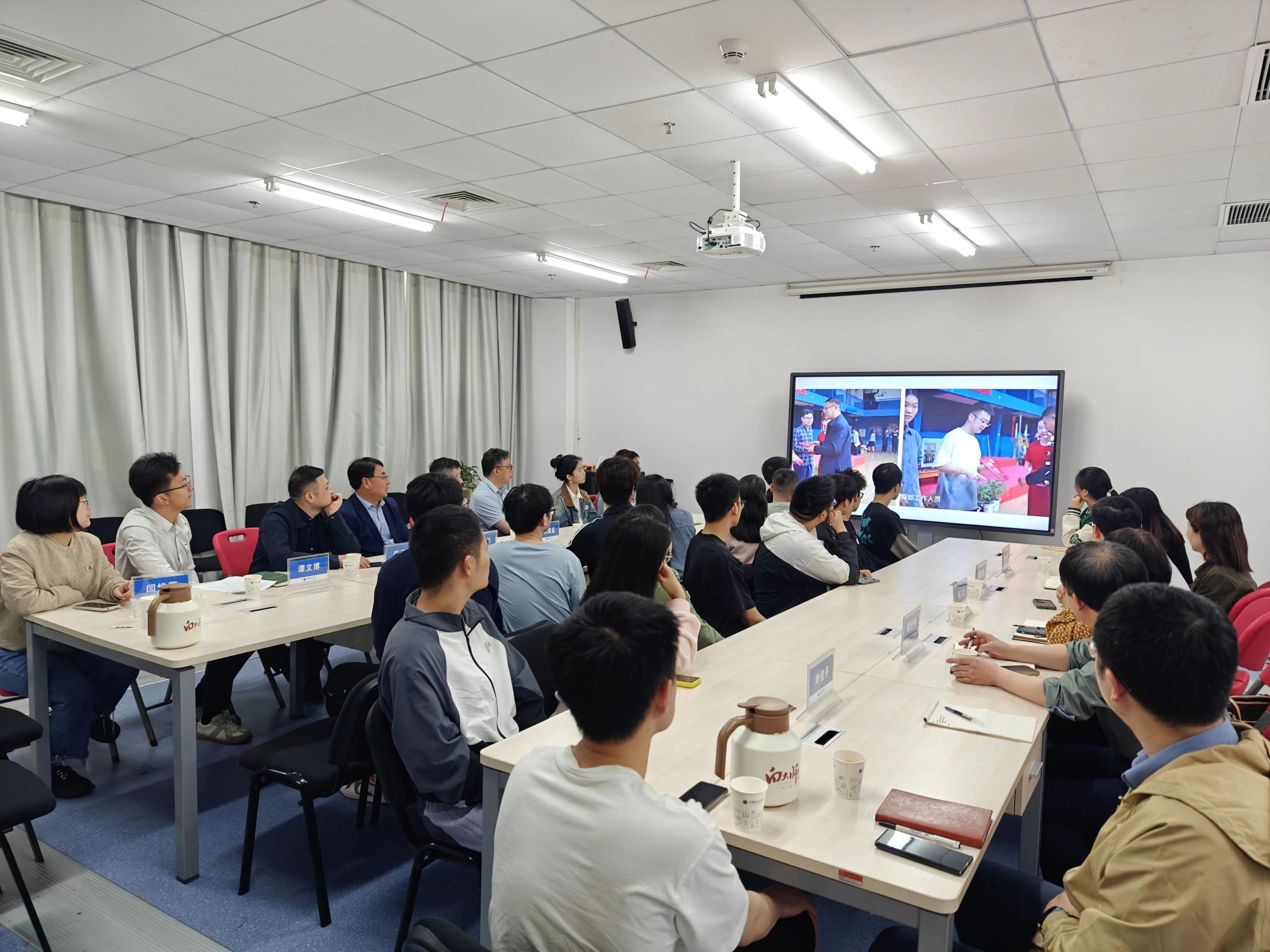 校党委常委、组织部部长陈文武,未来城校区管理办公室主任王文起,学院党委书记李国昌、院长张洪艳、副院长陈云亮、副院长胡成玉、党委副书记林小艳,湖北省教学名师成人影院 戴光明教授,全体辅导员,23名本研学生代表参加。