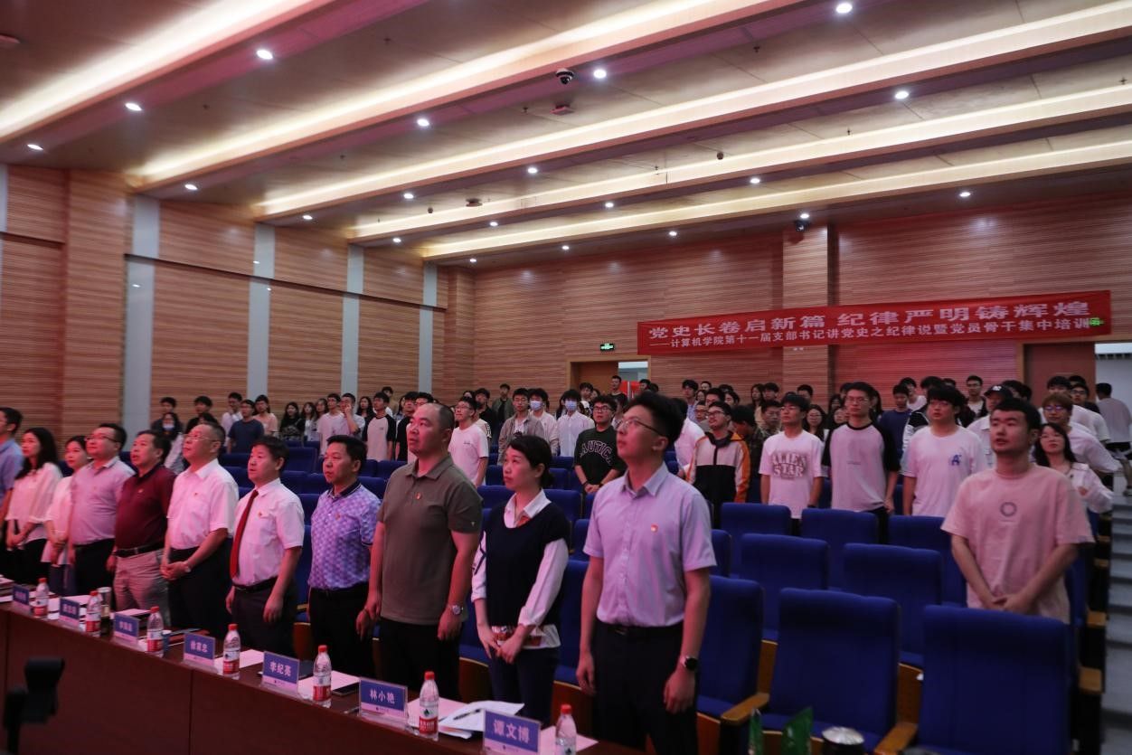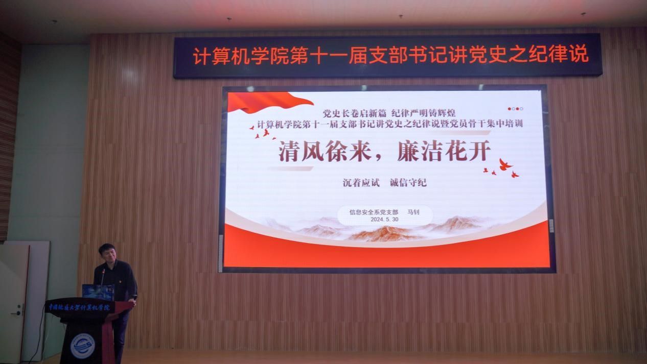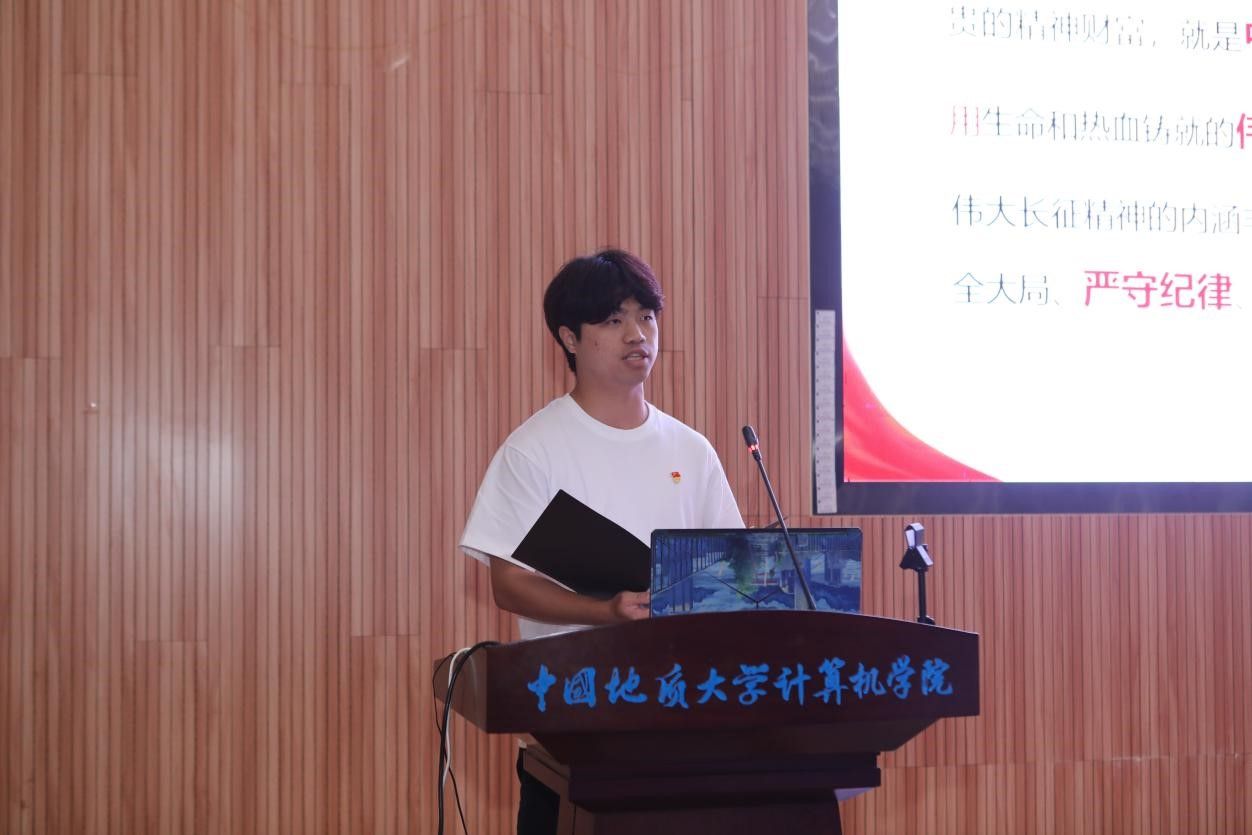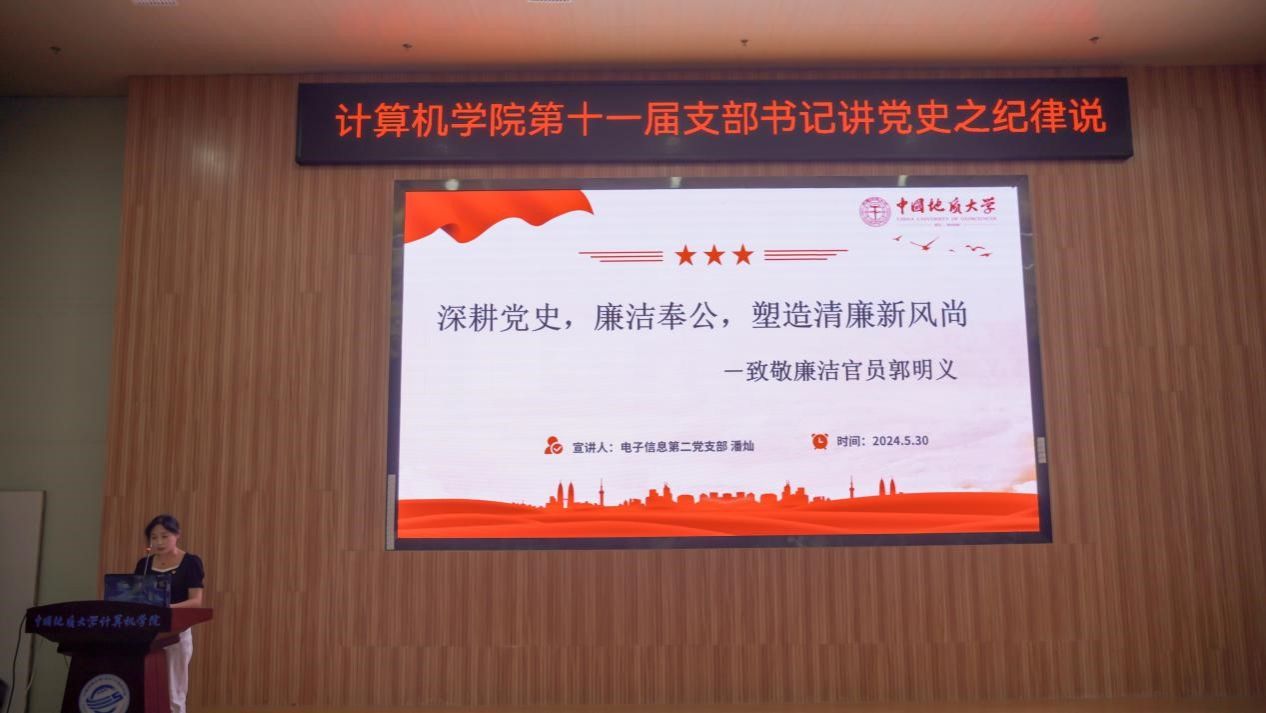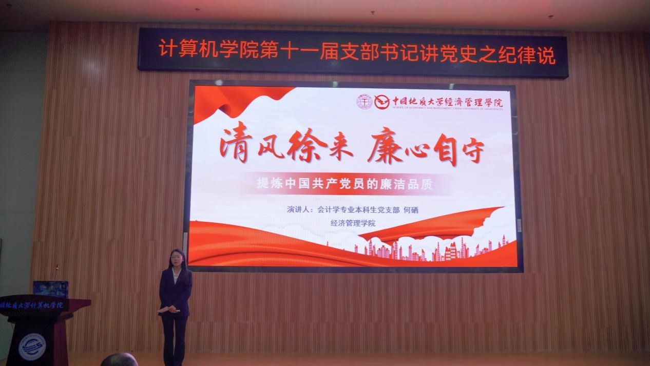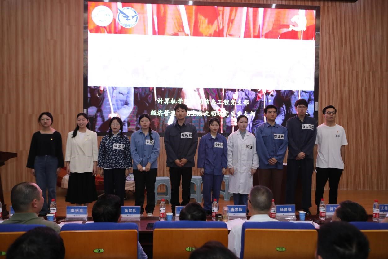 活动在雄壮的国歌声中拉开帷幕。学生党支部书记率先登场。电子信息第三党支部朱国强以刘邓大军的严明军纪为例,强调了纪律在军队建设中的重要作用。本科生信安党支部郭鹏顺则从新民主主义革命时期的党纪建设出发,强调了坚守初心、严明纪律的意义。本科生空信党支部延笑宇等多名成员以“党的纪律:烈烈清风”为题的诗歌朗诵,声情并茂地展现出对党廉政建设的歌颂。本科生计科第一党支部王诗敏则以延安廉政的故事为蓝本,深入剖析了党在推动廉政反腐方面的必要性和坚定决心。电子信息第二党支部潘灿通过讲述郭明义的故事,展现了廉洁奉公、无私奉献的崇高精神。电子信息第一党支部胡长浩深刻阐述了铁纪在长征这一伟大的历史事件中的关键作用。在成人影院 空间信息工程党支部与经济管理学院生态文明研究生样板党支部成员的精心编排下,以一场独具特色的话剧将现场气氛推向了高潮,生动诠释了“亲民爱民、艰苦奋斗、科学求实、迎难而上、无私奉献”的“焦裕禄精神”。