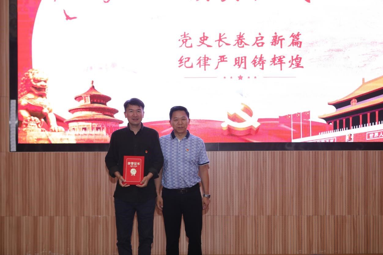 在示范党课环节,马钊老师以《清风徐来,廉洁花开》为题,深入浅出地阐述了廉洁自律的重要性,引导大家从现在做起,从身边小事做起,从遵守考试纪律、坚持推优评奖原则等日常学习工作生活做起,扣好廉洁自律“第一粒纽扣”。校友代表肖飞龙以《始终坚持严的基调 全面加强纪律建设》为题,带领大家深刻学习领悟习近平总书记关于党的自我革命的重要思想。李国昌书记原原本本领学了《中国共产党纪律处分条例》中关于政绩观的修订内容,分享了习近平总书记在延安梁家河、河北正定等地工作期间造福人民的故事,希望青年学生自觉学习党规党纪,切实践行造福人民的政绩观,并在新时代的新征程上不断建立新功。示范党课结束后举行了隆重的颁奖仪式。