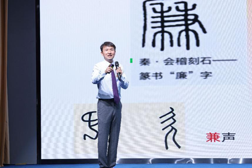 校师德模范、最受学生欢迎老师,成人影院 马钊老师,作了题为《廉洁花开锦程未来》的精彩分享。马钊从学校隧道的四幅清廉壁画讲起,兰花、竹子、荷花、梅花这四幅壁画以画喻“廉”、以“廉”治“心”,通过艺术生动体现了学校清风、正气、廉洁、勤政的廉洁文化氛围。他从“廉”字说开,对“廉”字进行了字形解读。广而兼是为廉:广阔天地,兼容万物。如若兼善,则可自清,如若兼金,则头顶悬镰。
