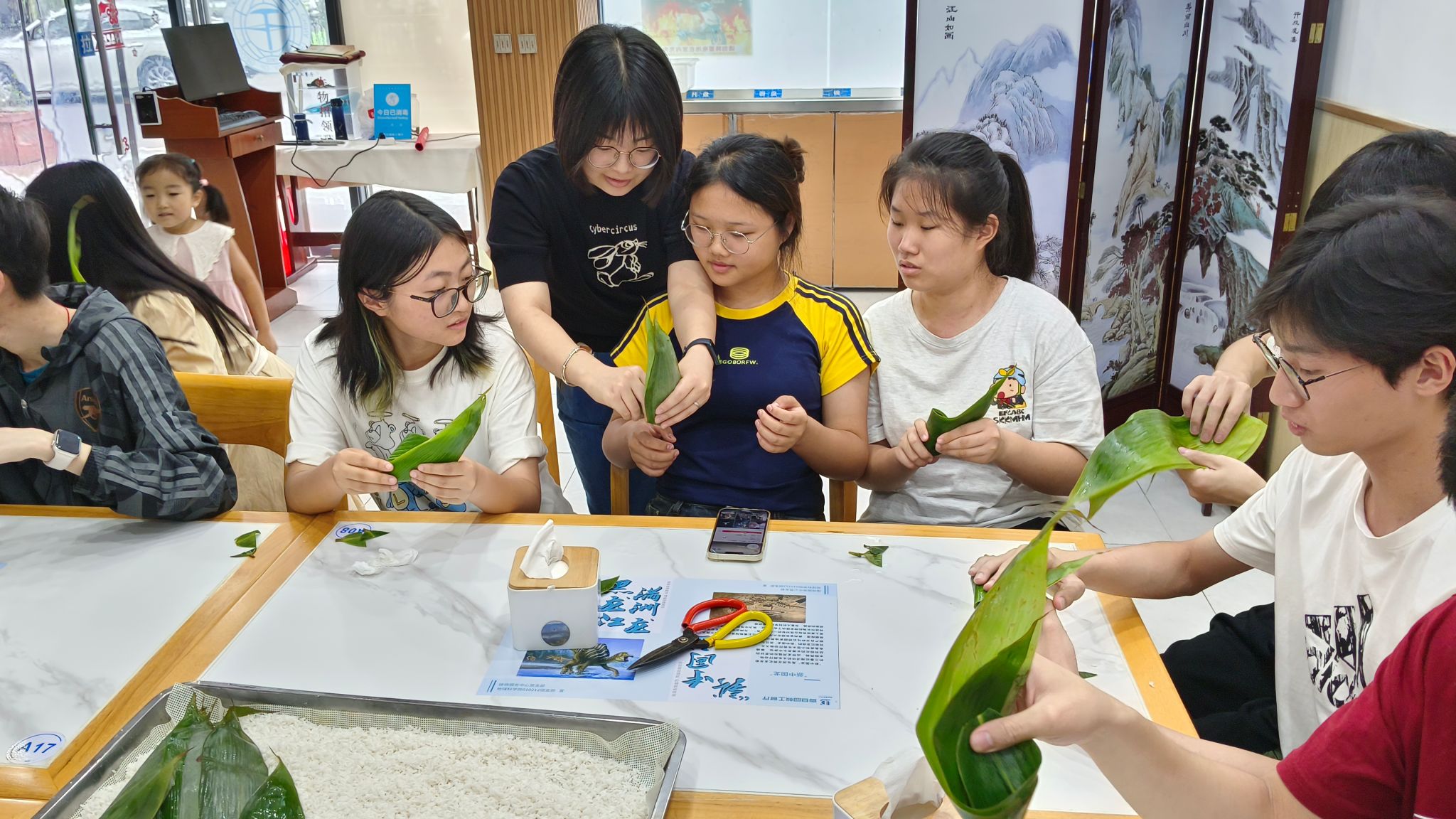 为进一步弘扬和培养爱国主义精神,传承中华优秀传统文化,贯彻劳动育人精神,丰富大学生的校园文化生活,6月10号下午,成人影院 与接待服务中心党支部在震旦园教工餐厅共同开展“迎端午·包粽子”劳动教育活动。成人影院 党委副书记、纪委书记林小艳,团委书记王太茂,团委副书记闫维蓉,辅导员刘佳丹及2023级30余名学生参加,活动由接待服务中心党支部书记吴华玉主持。