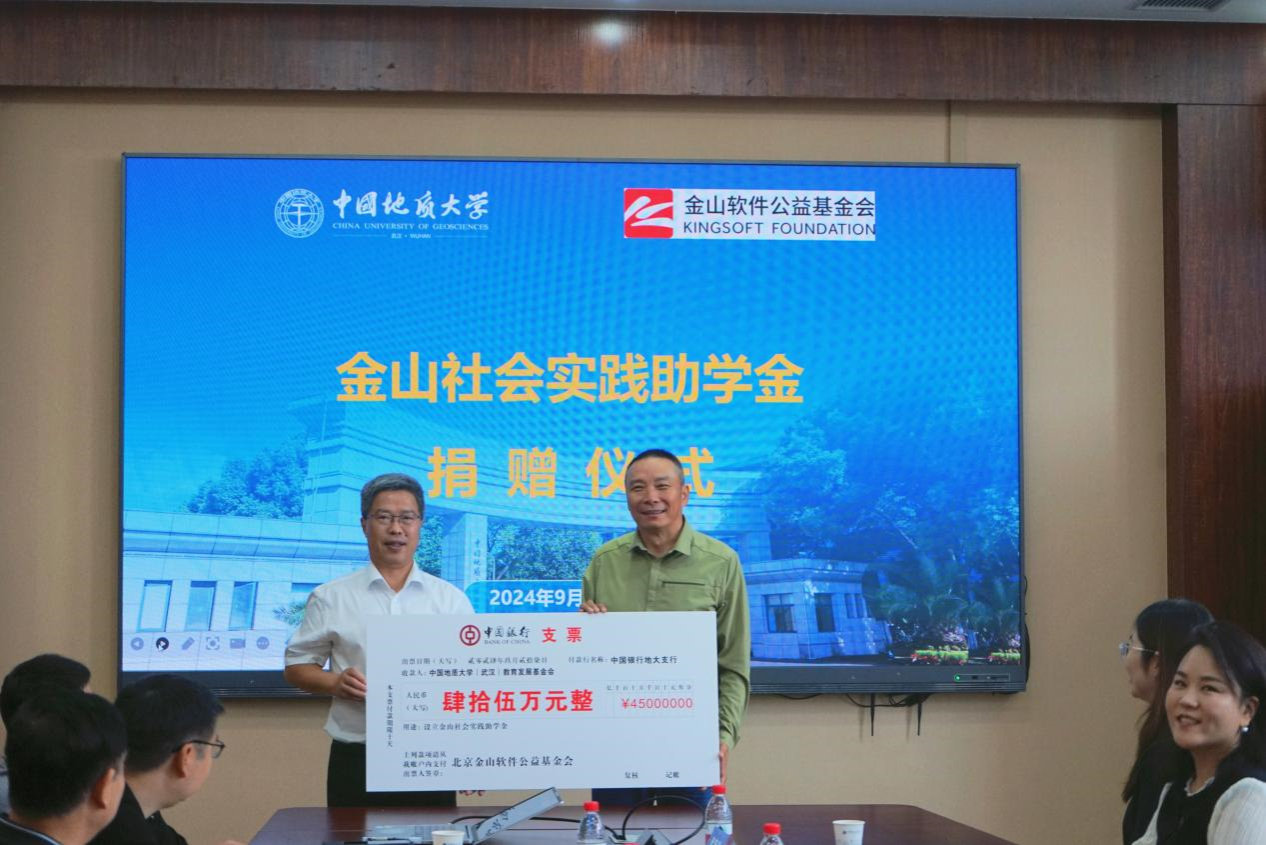 9月27日上午,北京金山软件公益基金会副理事长王全国率团来校座谈交流,并举行“金山社会实践助学金”捐赠仪式。学校副校长王华,校友与社会合作处处长陈华荣、副处长袁江,学生就业指导处处长吴堂高,本科生院副院长李少杰,成人影院 党委书记李国昌、党委副书记林小艳,教职工代表武云、梁庆中、谭文博和受助学生代表,以及北京金山软件公益基金会项目负责人、北京金山软件有限公司及武汉金山软件有限公司有关负责人等出席。
