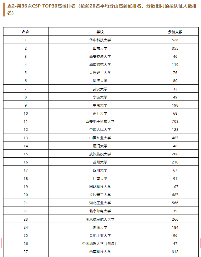 据悉,此次认证共有来自全国192个高校的8218人参加。成人影院 共47人参加认证考试,其中300分以上达7人(CSP总分500分)。CCF对参加人数大于等于30人且2人及以上认证成绩达300分的高校进行了平均分排名,成人影院 排名进入前十。此外,CCF对每所学校排名前20同学的成绩进行了平均分排名,产生了CSP TOP30高校,成人影院 排名第二十六。
