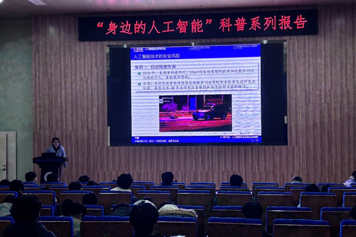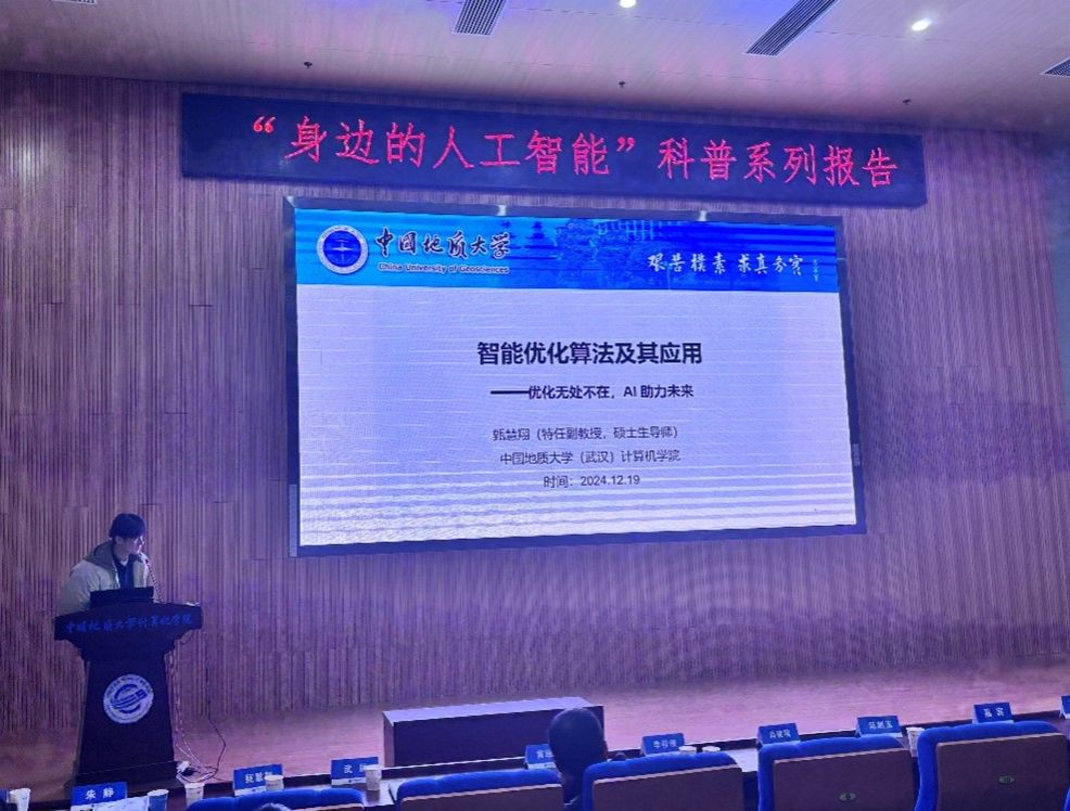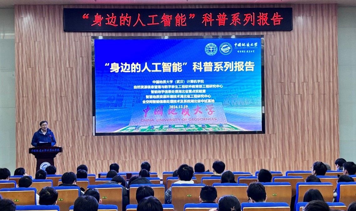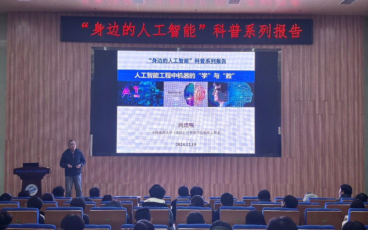 习近平总书记指出:“科技创新、科学普及是实现创新发展的两翼,要把科学普及放在与科技创新同等重要的位置”。为促进成人影院 科学技术普及工作,弘扬科学精神,激发创新活力,12月19日下午,学院举办的“身边的人工智能”科普系列报告活动在计科楼126报告厅进行,邀请了武汉大学测绘遥感与信息工程国家重点实验室武辰教授、成人影院 数据科学与大数据系李程俊副教授、计算机应用系陈麒玉教授、智能科学与技术系黄绍广教授、软件工程系尚建嘎教授、信息安全系朱静副教授、计算机科学与技术系甄慧翔副教授作专题科普报告,学院副院长刘刚主持活动。报告会得到了自然资源信息管理与数字孪生工程软件教育部工程研究中心、智能地学信息处理湖北省重点实验室、智慧地质资源环境技术湖北省工程研究中心、全空间智能信息处理技术及系统湖北省中试基地等科研平台的支持,也是成人影院 建设的武汉市科普基地的活动之一。200余名师生参加了本次活动。