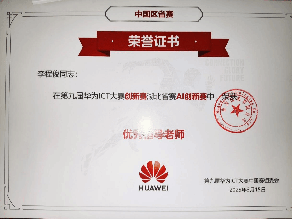 4月28日,第九届华为ICT大赛湖北省赛颁奖典礼在湖北科技职业学院关山校区隆重举行。成人影院 大数据系李程俊老师在“第九届华为ICT大赛创新赛湖北省赛AI创新赛”中获优秀指导老师,学校为“第九届华为ICT大赛创新赛湖北省赛获奖团队”。