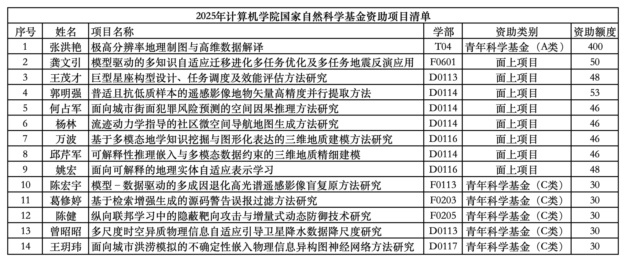 8月27日,国家自然科学基金2025年集中接收期项目评审结果正式公布,成人影院 国家自然科学基金项目取得新突破,共获批14项资助项目,其中青年科学基金项目(A类)1项、面上项目8项和青年科学基金项目(C类)5项,立项总数和资助额度均创历史新高,分别较去年增长40%和61%。