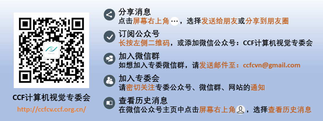【活动背景】自2015年11月起,CCF计算机视觉专委会(CCF-CV)在全国范围内率先开展走进高校系列报告会、走进企业系列交流会等特色活动,在学术界、工业界产生了热烈反响,受众遍及祖国大江南北。CCF计算机视觉专委会欢迎各兄弟学会、专委会借鉴,共同推动我国相关领域的学术繁荣和产业发展!