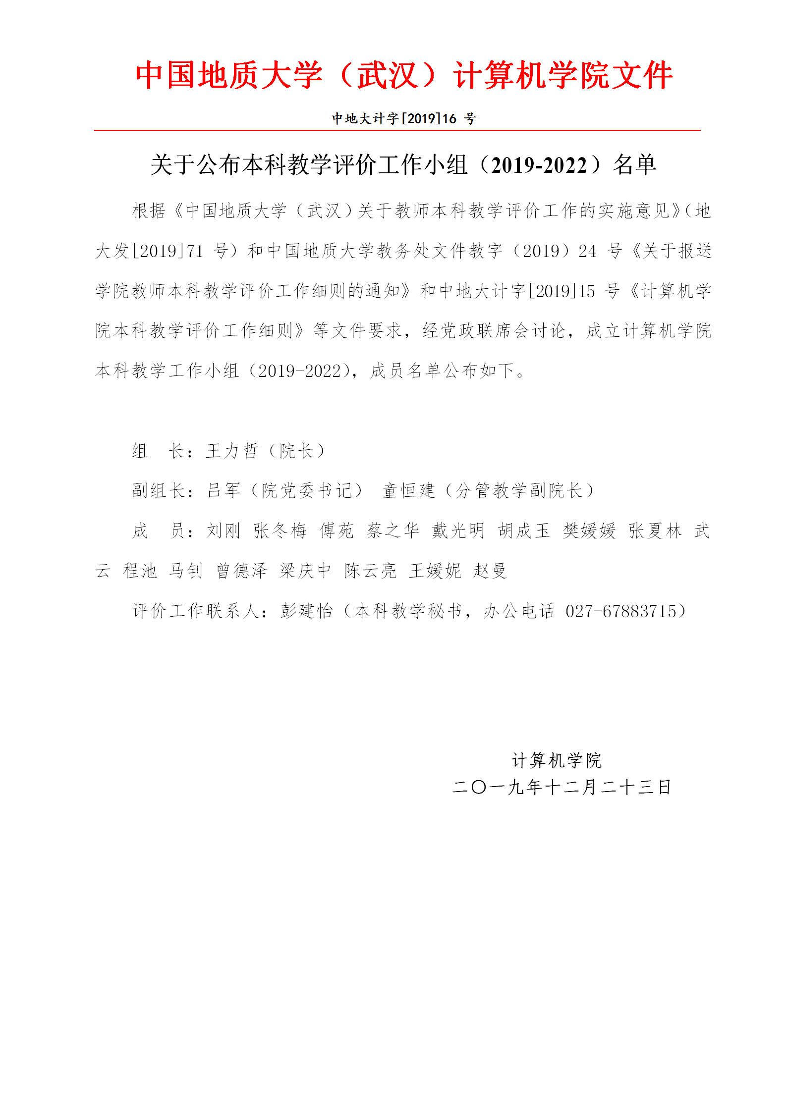 成人影院 关于公布本科教学评价工作小组(2019-2022)名单