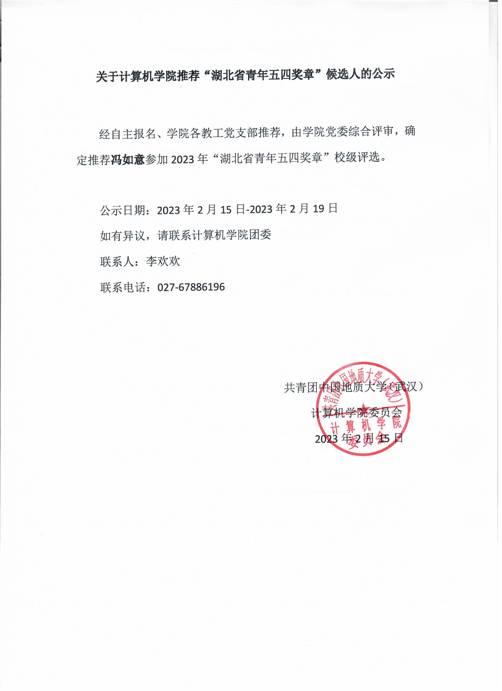 关于成人影院 推荐“湖北省青年五四奖章”候选人的公示