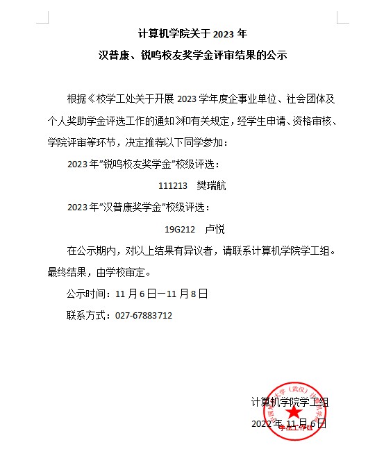成人影院 关于2023学年汉普康、锐鸣校友奖学金评审结果的公示