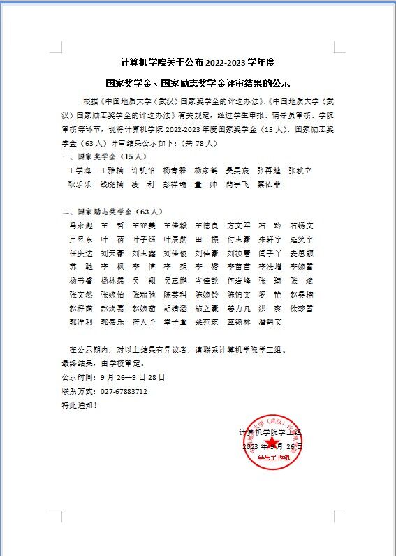 成人影院 关于公布2022-2023学年度国家奖学金、国家励志奖学金评审结果的公示