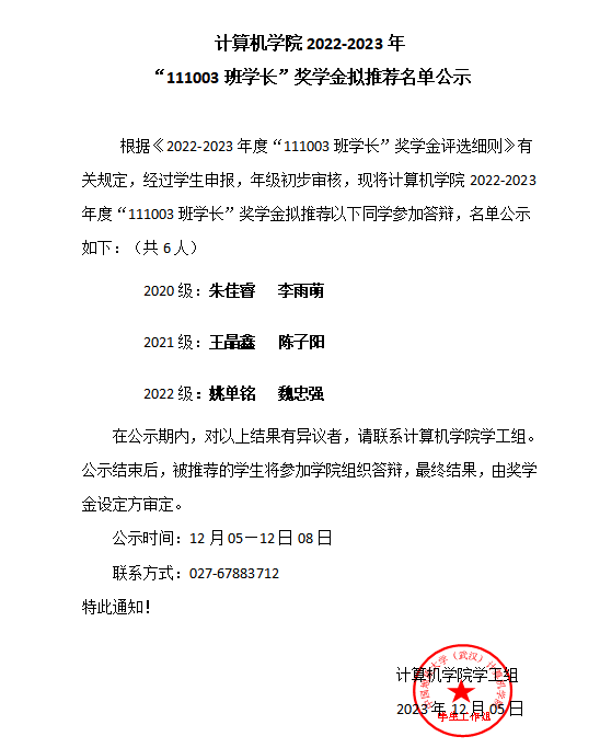 成人影院 2022-2023年“111003班学长”奖学金拟推荐名单公示