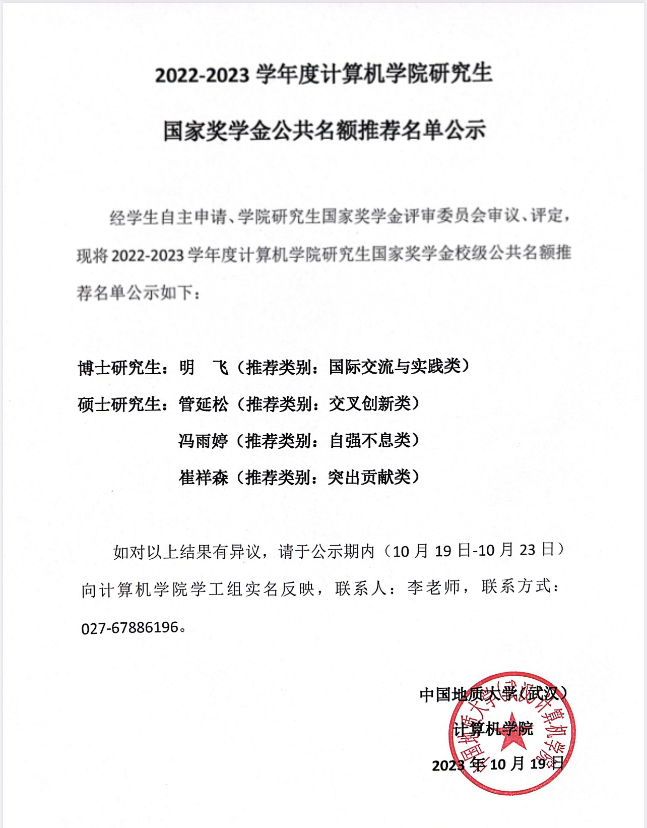 2022-2023学年成人影院 研究生国家奖学金公共名额推荐名单公示