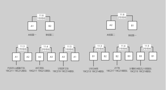 参加本次比赛的共有6支队伍,按班级序号进行相邻两班组队,比赛由小组赛、半决赛和决赛组成。