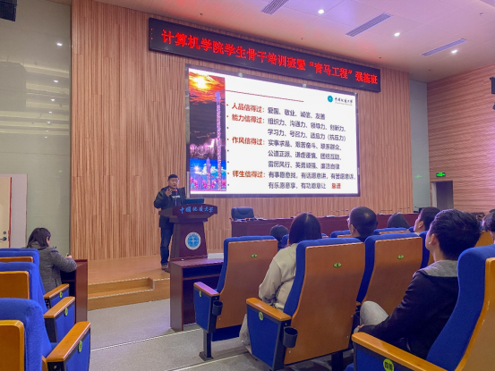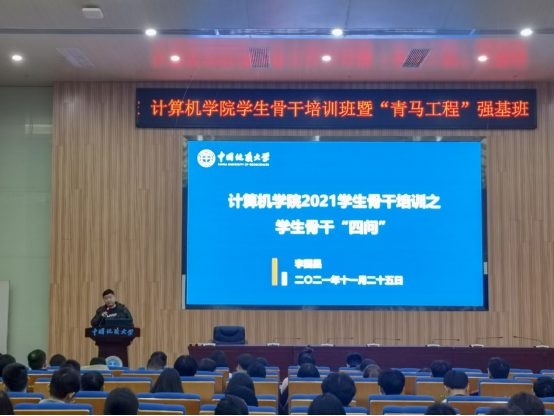 (通讯员:饶骁扬)11月25日中午,成人影院 2021-2022学年学生骨干培训班暨“青马工程”强基班讲座第二期:《学生骨干”四问”》于成人影院 126报告厅成功举行,本次讲座由学院党委书记李国昌主讲,学院团委、学生会、研究生会、党建办公室学生骨干以及本科生、研究生各班班委参加。