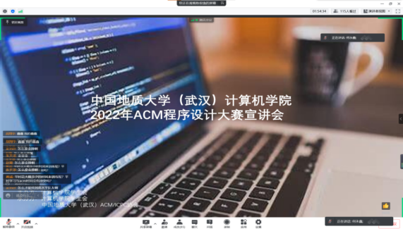 (通讯员:李柏渊)2022年3月5日下午,成人影院 “ACM-IPCP”协会主办的成人影院 (武汉)ACM线上宣讲会顺利举行。会议由叶岭岚、陈俊逸主持,出席会议的嘉宾有赵霄、朱天泽、战翔宇和何永鑫。参会人员为各学院的128名同学。