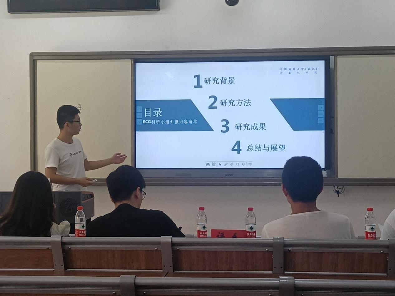 各答辩队伍基于实验理论基础和数据分析,展现立项以来的研究成果。陈俊的《人体动作在线识别与计数》项目以C3D模型为例,介绍对UCF101数据集进行人体动作识别的方法,演示模型效果的同时分析当前存在的问题,并提出下一步科研计划。李天屹团队的《基于深度学习的遥感影像语义分割》项目将深度学习中的OCR方法运用于遥感影像语义分割中,通过对OCRNet进行修改完善,加入了GBR模块、三并行注意力模块,设计出Tri-parallel OCRNet模型,使其能够在遥感影像语义分割中发挥出作用。李铂浩团队的《基于PPG信号的运动手环高效认证机制设计》项目,详细介绍PPG信号与PPG认证技术,现场展示团队所做的数据预处理、数据分析、信号特征提取及PPG认证技术实现等。