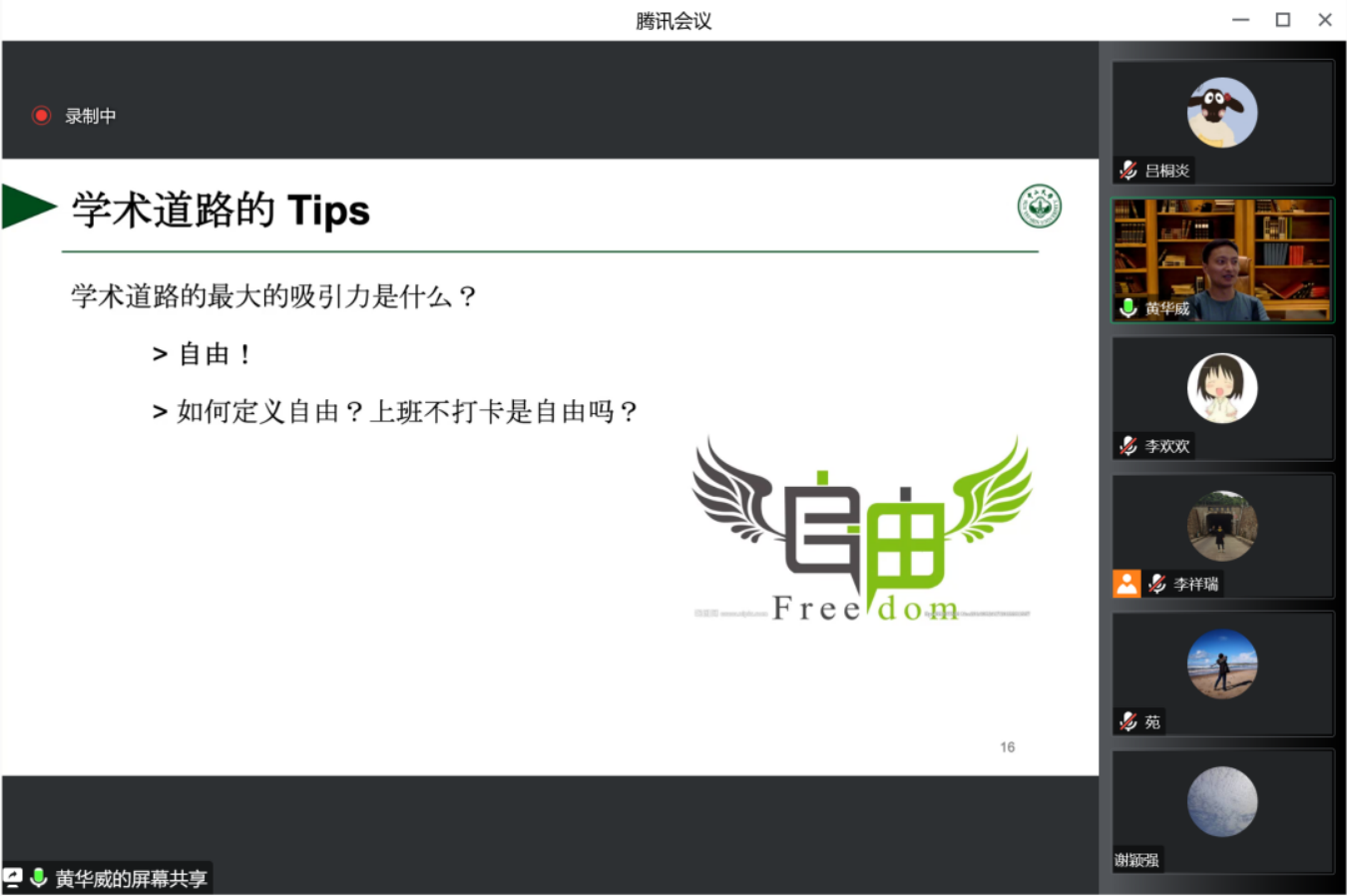 为进一步加强校友与母校的联系,充分发挥校友在帮助成人影院 学子树立正确择业、就业、创业方面的示范导向作用,激励计科学子努力学习,励志成才。成人影院 于线上成功举办“专业思政领航”计划系列活动之“思源”校友论坛第四期,本期特邀2011届计算机科学与技术专业校友,中山大学软件工程学院副教授、博士生导师黄华威做主题为“找准人生的方向”的专题讲座。学院党委副书记傅苑、团委书记李欢欢、学工组全体老师及本研学生参加活动,李欢欢担任主持。