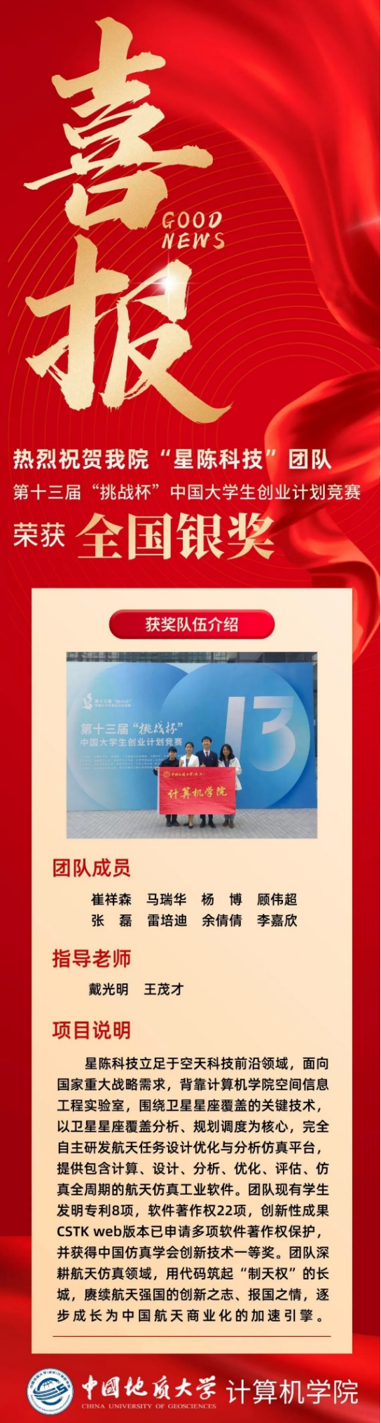 喜报 | 热烈祝贺成人影院 “星陈科技”团队在第十三届“挑战杯”中国大学生创业计划竞赛中荣获全国银奖