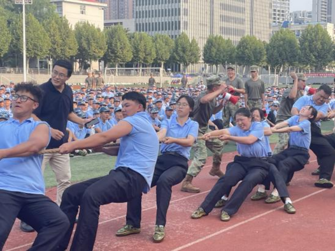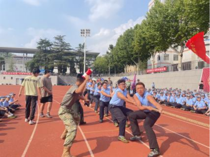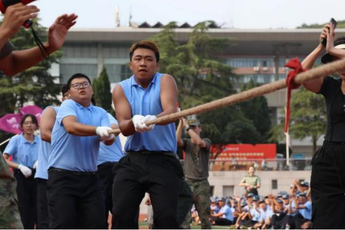 为丰富军训活动,增强学生身体素质,提升各连队凝聚力,发扬团队精神,成人影院 (武汉)2023级本科生军训拔河比赛在西区田径场举行。21位计科学子自告奋勇代表学院参赛,其余新生作为观众为参赛队员们加油助威。