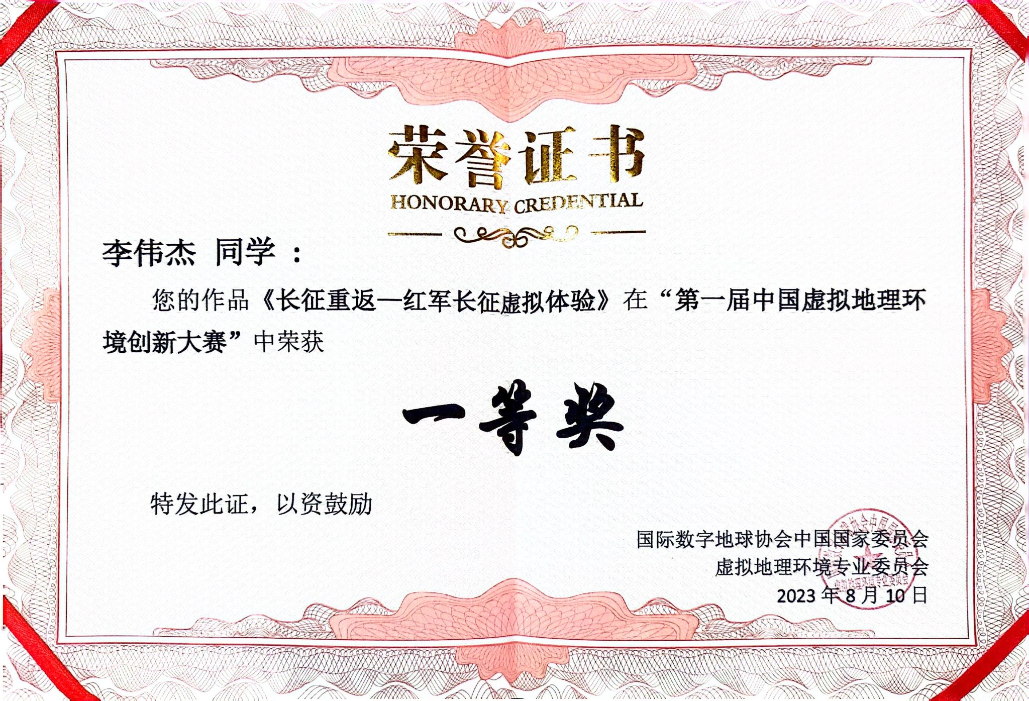 编者按:经过激烈的角逐,在吉林延边举行的2023年第一届中国虚拟地理环境创新大赛圆满落幕。成人影院 的李伟杰、郝孟璂、王洋、刘建东、郑诗语五位研究生组成的“长征重返-红军长征虚拟体验”团队在这场赛事中展现出色的实力,一举拿下创意原型赛道一等奖。以下是团队的参赛历程以及每位成员参赛过程中的感悟。