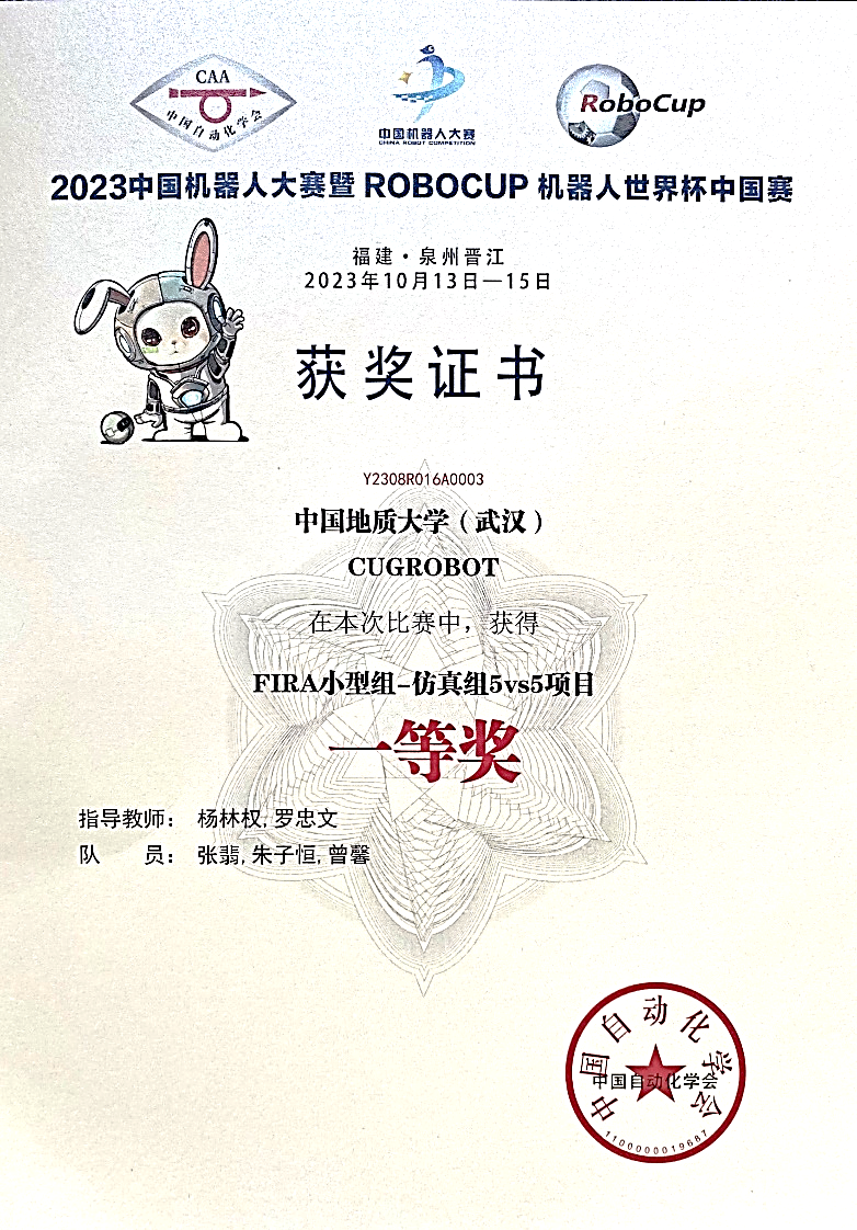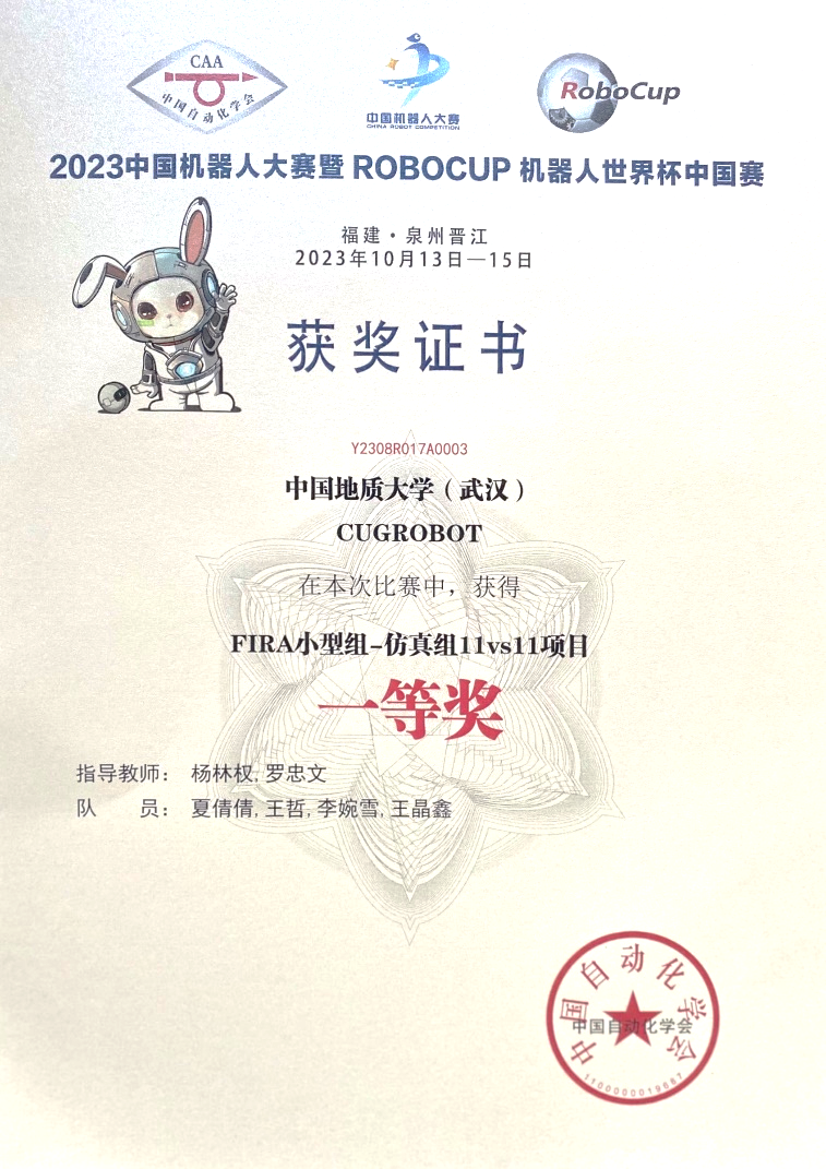 10月13至15日,2023年“中国机器人大赛暨RoboCup机器人世界杯中国赛”在福建晋江国际会展中心落下帷幕。我校成人影院 杨林权副教授和罗忠文教授指导的学生团队参赛。经过激烈的比赛,最终学生团队勇夺FIRA仿真组5vs5项目第3名,国赛一等奖和仿真组11vs11项目的第3名,国赛一等奖。