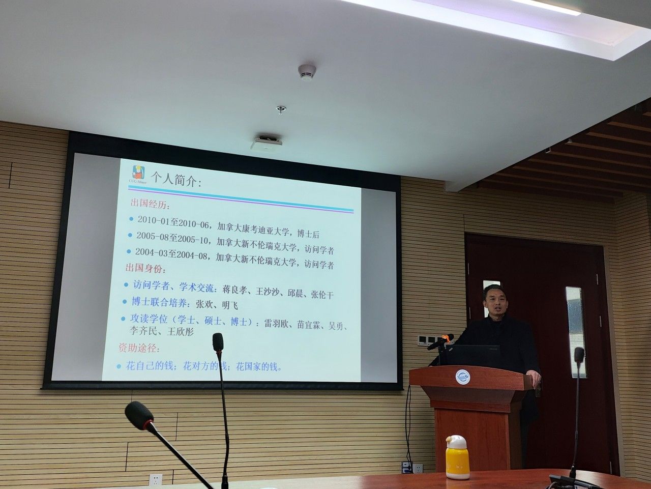 随后,蒋老师详细分享了其所指导的研究生们在美国、加拿大、德国、西班牙、澳大利亚和新西兰等国家的访学经历。蒋老师详细介绍了他们参加的一系列国际学术会议和研讨会,期望同学们能够在留学过程中积极与国际同行分享最新的研究成果和经验,并了解最前沿的学术动态和趋势。