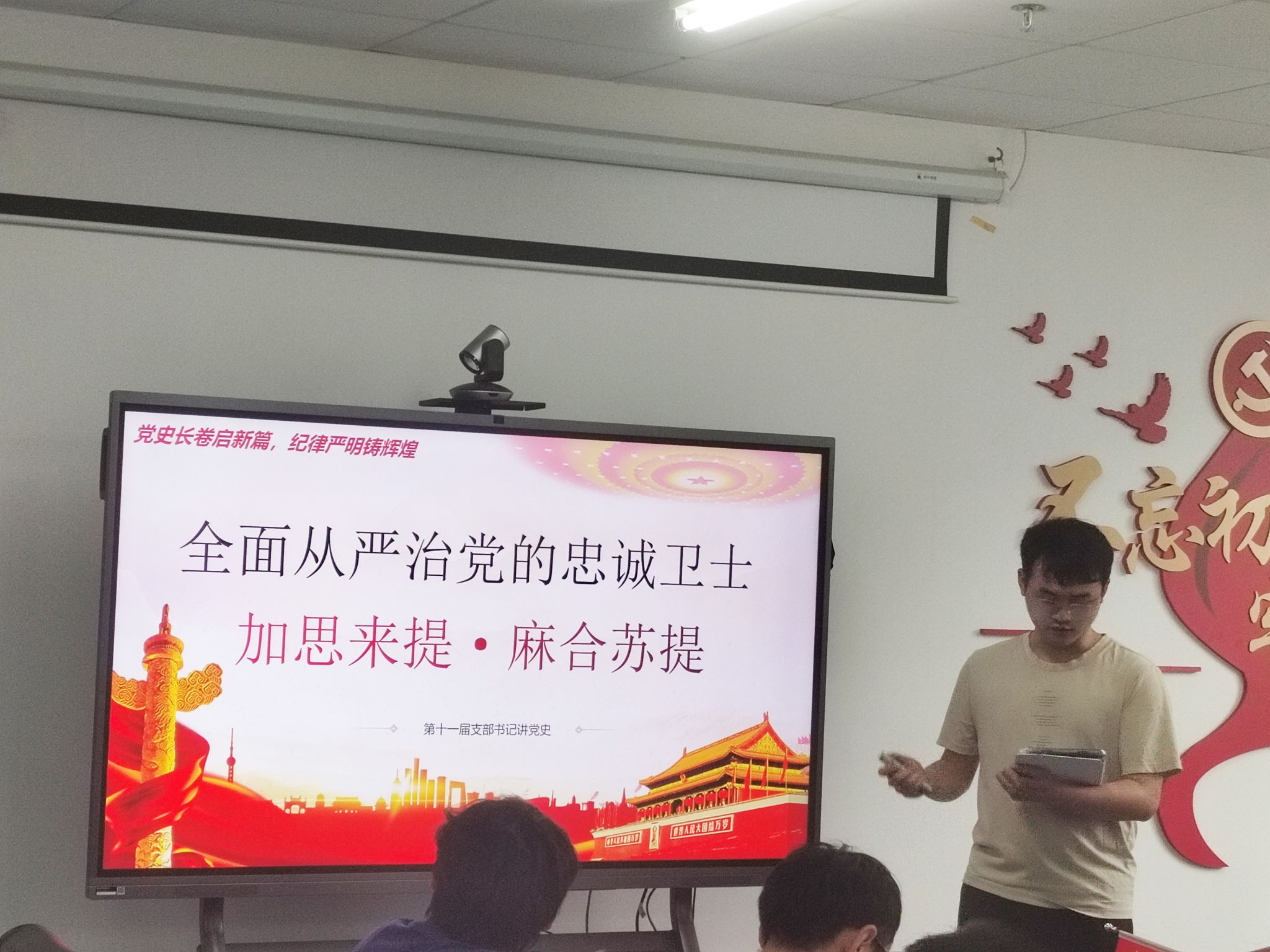 电子信息第三党支部朱国强讲述刘邓大军的严明军纪。本科生软工第一党支部彭胤伦以加思来提·麻合苏提同志的故事体现出一位全面从严治党的忠诚卫士形象。本科生大数据党支部李浩然深情地讲述了罗荣桓的故事,以这位最守纪律的党员故事宣扬遵守纪律、实事求是的作风。