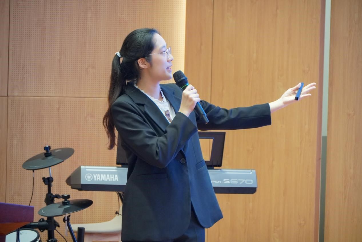 在精彩的中场表演环节,钟芷芊同学以空灵婉转的嗓音深情演绎《雨爱》,每一个音符都饱含着细腻情感;胡鑫同学怀抱吉他,用清澈而富有穿透力的歌声奏响《花海》,将现场氛围推向高潮。