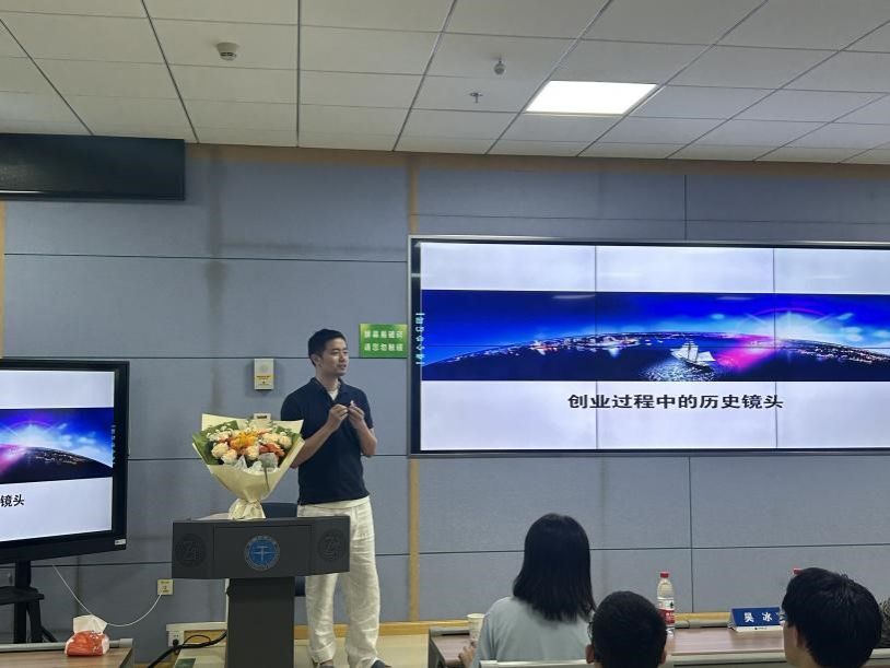 石墨文档创始人吴冰上台分享了自己的创业历程。他谈到,受到父母“技术报国”精神的影响,他放弃了硅谷的高薪职位,回国与弟弟共同创办石墨文档,致力于自主创新。他鼓励同学们勇于突破自我,抓住中国科技发展的巨大机遇,特别是在北京、上海、武汉、深圳等创新中心。他说,创业不仅是技术的积累,更是选择的智慧和持久的探索精神。
