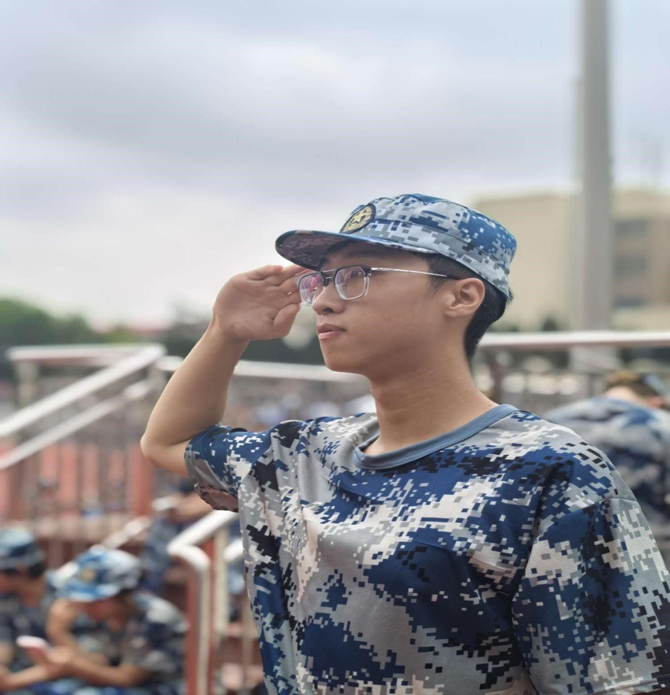 训练场上,教官们首先进行队列动作示范。整齐划一的步伐、铿锵有力的口令,仿佛严密的算法执行,瞬间点燃了全场的训练热情。基础队列训练从最简单的站军姿开始,“抬头挺胸、目视前方、双手紧贴裤缝线...”教官们耐心纠正每个动作细节,就像调试程序般一丝不苟。同学们虽然初涉军训,却表现出了计科学子特有的认真与坚韧。
