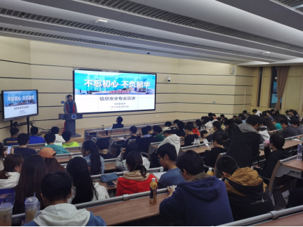 (通讯员:马钊)为深入贯彻落实学校党委《关于开展“我为群众办实事”实践活动》的通知,帮助成人影院 计算机大类学生们更好的了解专业方向、认识专业内涵,确立人生的重要目标,激励学生们更好的学习,2021年10月28日晚上19:00,在未来城公教2-101教室,信息安全系教师党支部成功举办了一场以“不忘初心,不负韶华”为主题的信息安全专业方向宣讲会。