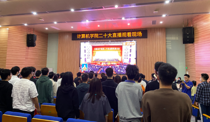 2022年10月16日上午10时,在学院党委的统一部署下,人工智能系组织老师们全程观看了党的二十大开幕会。部分老师在126报告厅通过大屏幕集体观看,部分老师在工作室、家中、或者出差的路途中通过网络或电视观看,部分有教学任务的老师课后观看了开幕会回放视频。观看过程中,大家心潮澎湃、深受鼓舞,现场更是自发地爆发出持久而热烈的掌声。