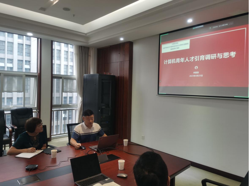 在交流会上,李国昌交流了以“计算机青年人才引育”为题的调研成果,分享了完善人才评价标准、增强基础性学科支撑作用、组团引才、加强科研工作领导等建议。主题教育期间,李国昌组织了院内青年教职工座谈会、中心实验室座谈会,倾听教职工意见,带队调研了华中科技大学成人影院 、武汉大学成人影院 ,对7所兄弟高校的信息类学院领导进行面谈或电话访谈,学习借鉴兄弟高校先进经验;同时带队开展暑期学生走访慰问,并深入金山办公、科大讯飞、小米公司开展党建联学和访企拓岗。