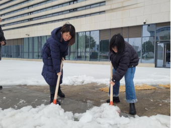 大家挥动铁具、轮番作业,干劲十足、配合默契,共同开辟出一条条洋溢着温情的出行平安路,也为学院的正式开学扫除了“障碍”。师生忙碌的身影在皑皑白雪中显得格外耀眼,俨然是冬日里的一抹暖阳。