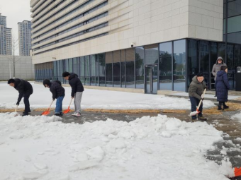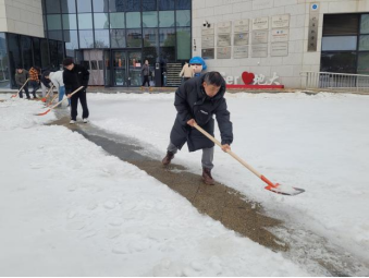 2月23日上午9时半,在学院党委书记李国昌、院长张洪艳的带领下,成人影院 20余名教师、学生志愿者分组分片对崇智楼西门、南门区域进行集中扫雪除冰,掀起了一场“战冰雪、保平安、暖人心”的热潮。
