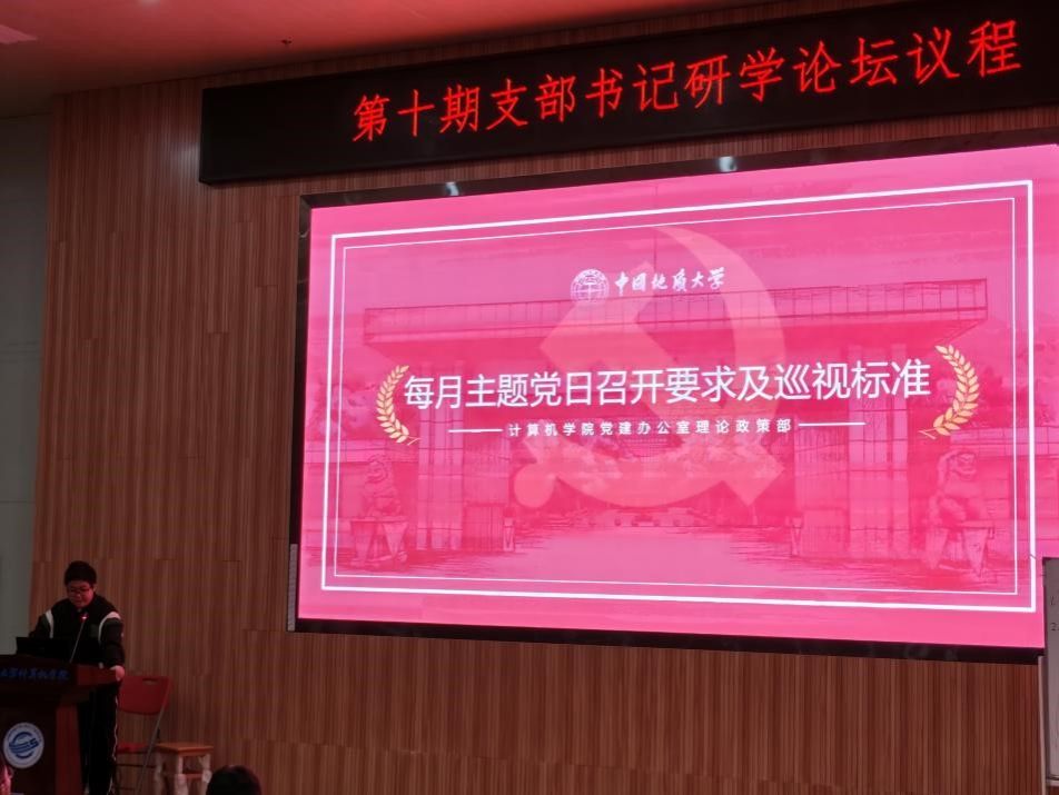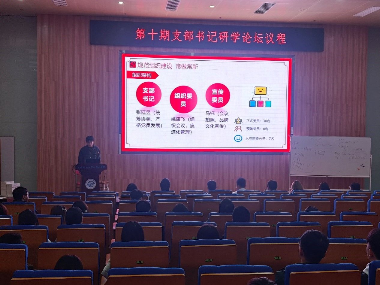 接下来的业务培训环节,由学生党建办公室理论政策部姜帅开展主题党日工作培训。从主题党日的策划逻辑、流程规范、创新形式等方面进行系统讲解,结合“三全三新支部书记讲党史”等品牌活动案例,为各支部书记提升主题党日质量提供了实操性指导,助力支部党建工作提质增效。