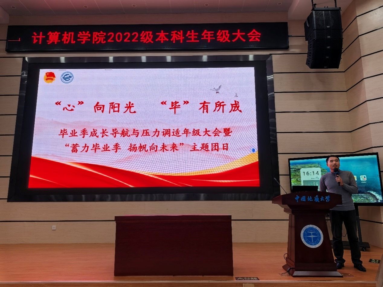 为引导大四学子树立积极健康心态,科学调整及坚定未来发展路径,11月13日下午,成人影院 2022级本科生“‘心’向阳光 ‘毕’有所成”毕业季成长导航与压力调适年级大会暨“蓄力毕业季 扬帆向未来”主题团日活动在未来城校区公教一208教室顺利举行。学生心理健康教育中心王煜、学院教务科李婷、辅导员王太茂及2022级在校本科生参加,会议由王太茂主持。
