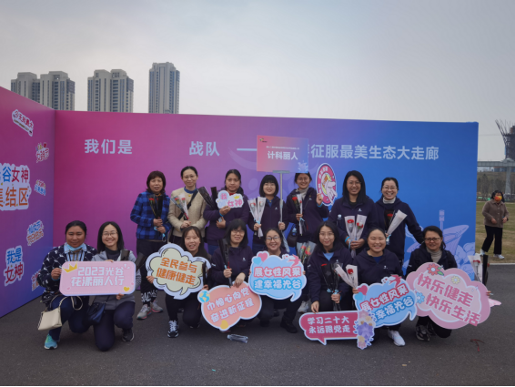 花红柳绿簇春华,计科丽人花漾嘉。为深入学习贯彻党的二十大精神和习近平总书记关于妇女事业和妇女工作的重要指示精神,在第113个国际劳动妇女节来临之际,成人影院 工会于3月3日组织学院女职工代表在光谷中央大走廊开展了花漾丽人行健步走活动,以纪念“三八”国际劳动妇女节,倡导健康生活、快乐工作。
