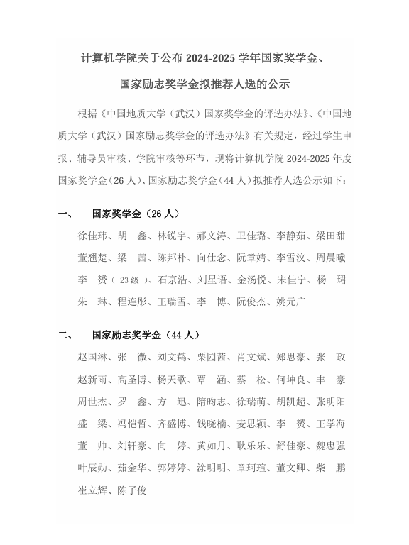 成人影院 关于公布2024-2025学年国家奖学金、国家励志奖学金拟推荐人选的公示