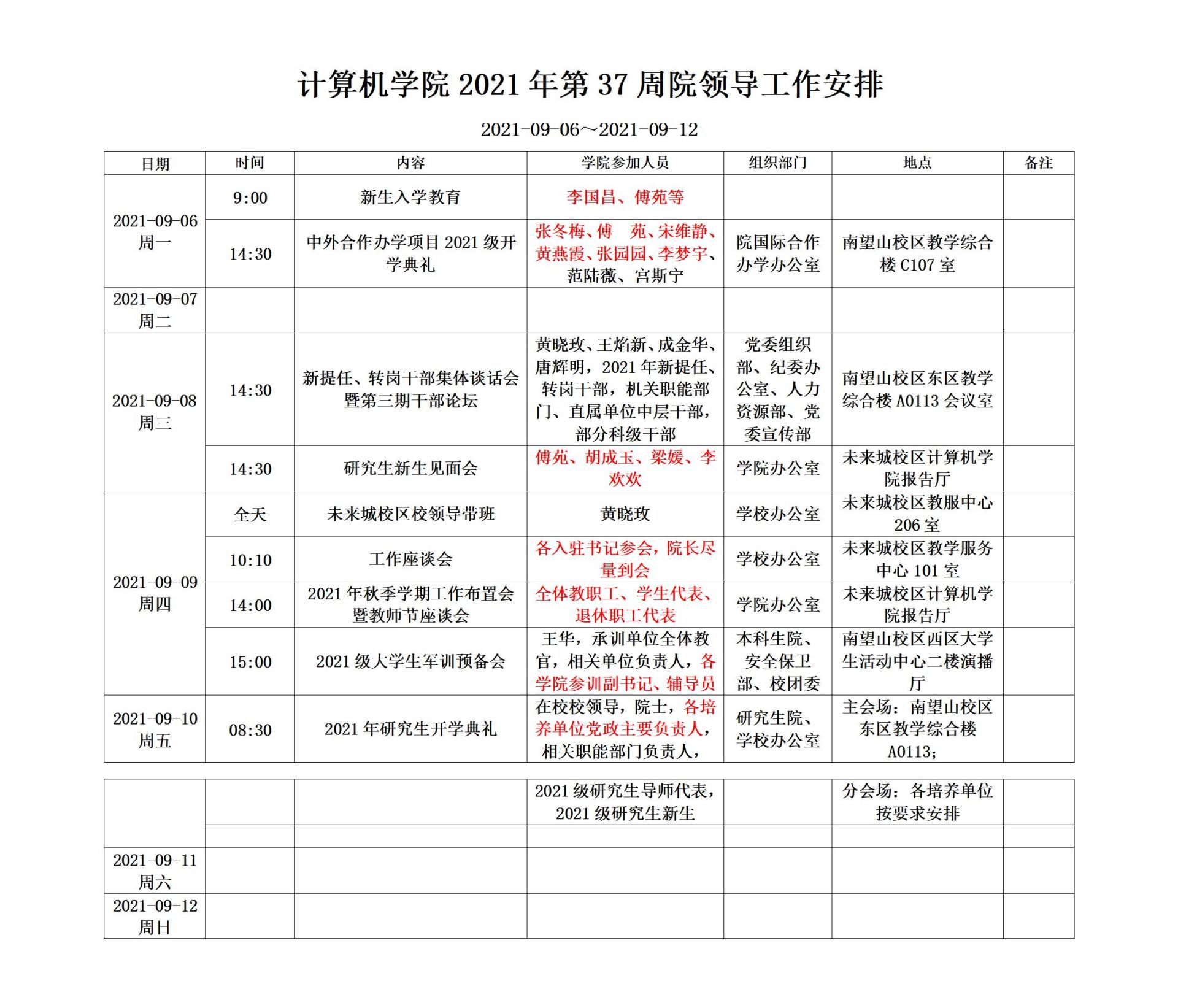 一周安排(第37周,2021-09-06~2021-09-12)