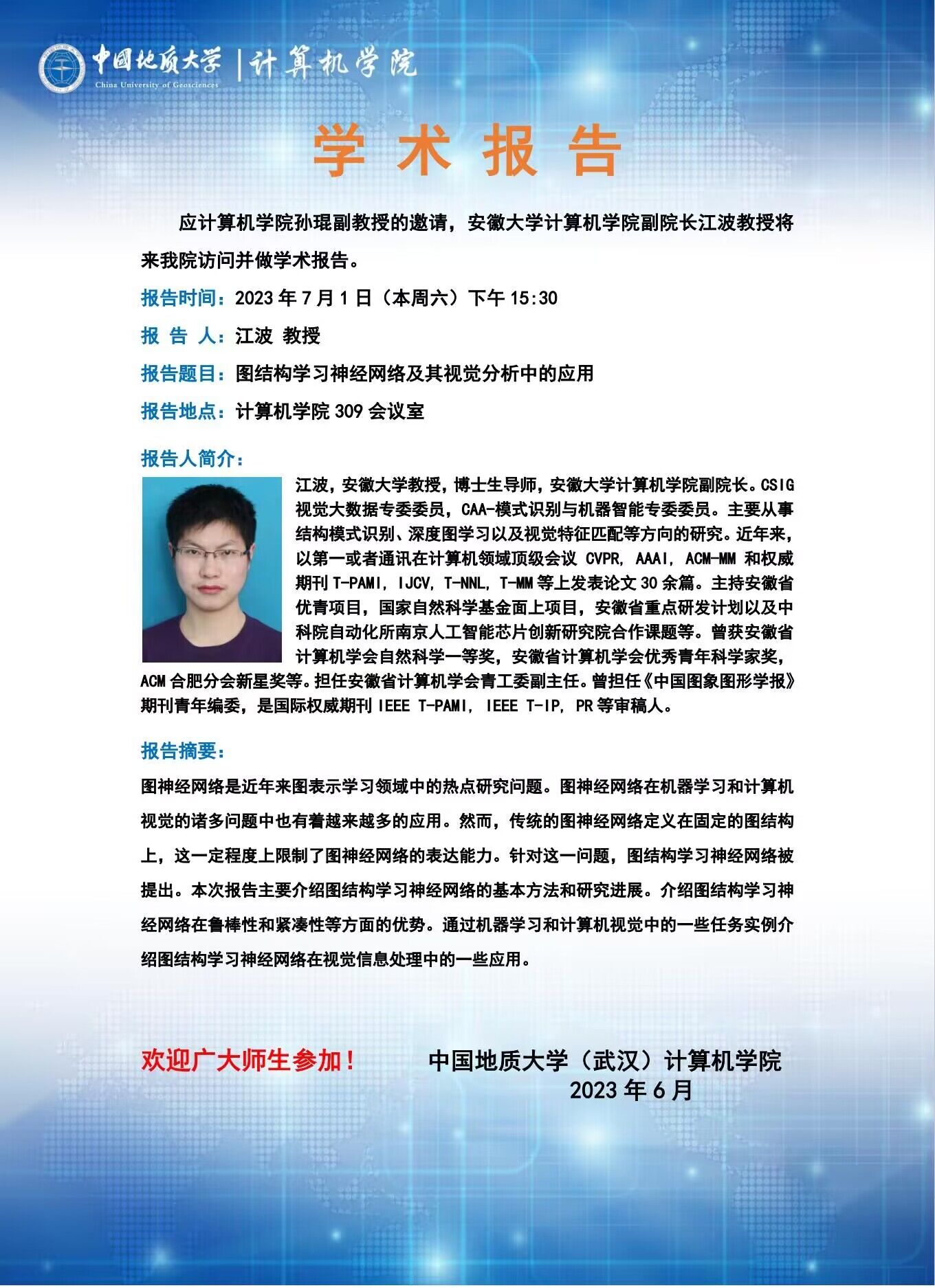 学术报告:安徽大学成人影院 副院长江波教授——图结构学习神经网络及其视觉分析中的应用